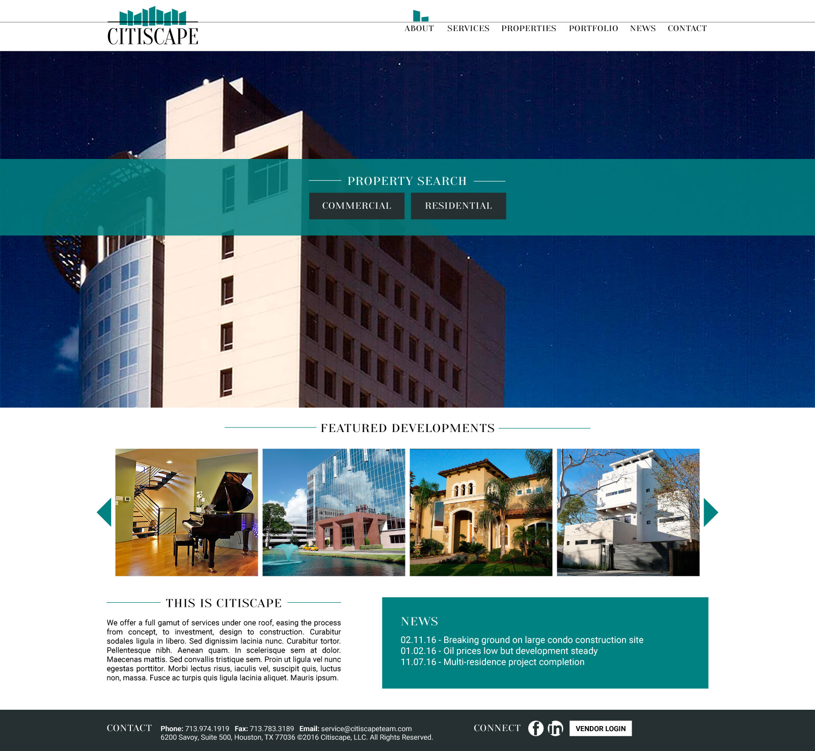 Citiscape is an international commercial real-estate and development firm with headquarters in Houston, TX. They needed a website, and they needed it fast. Design and development flew by and now they have a website with all of their business info in one spot. The site features all of their previous projects as well as a client portal where they can exchange files and project info with their clients.